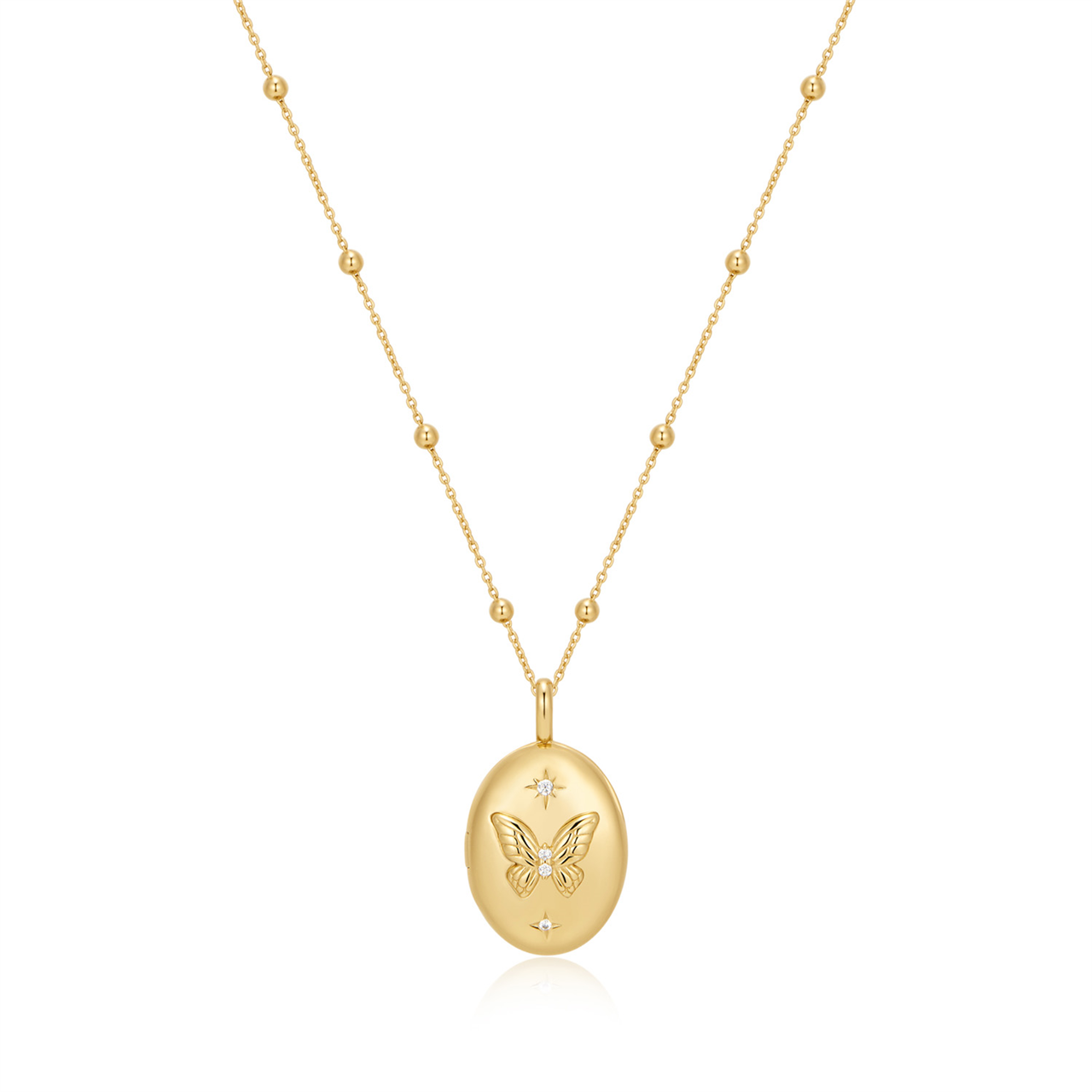Butterfly C/Z Locket Pendant with Chain - 45+5cm - Y/G Plated